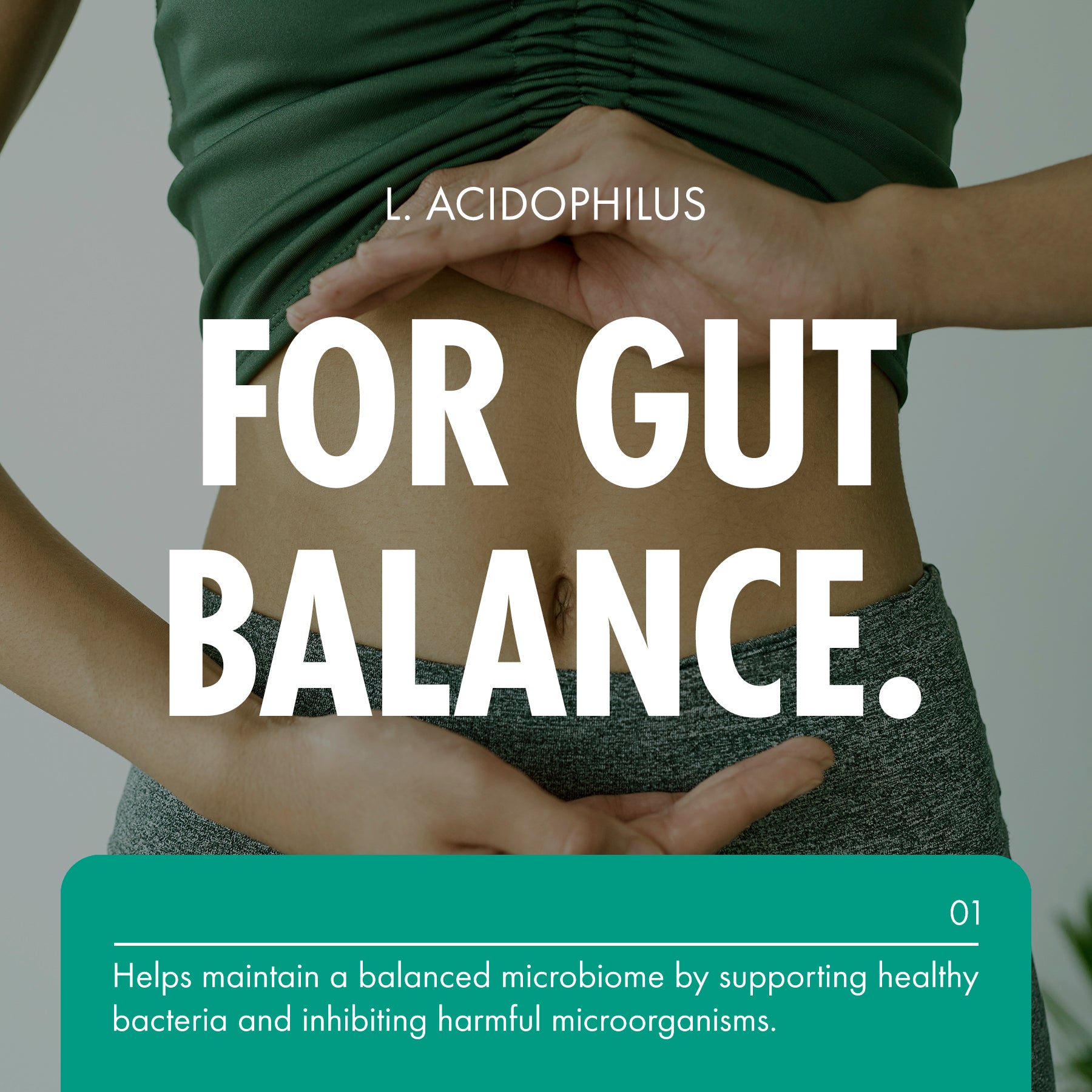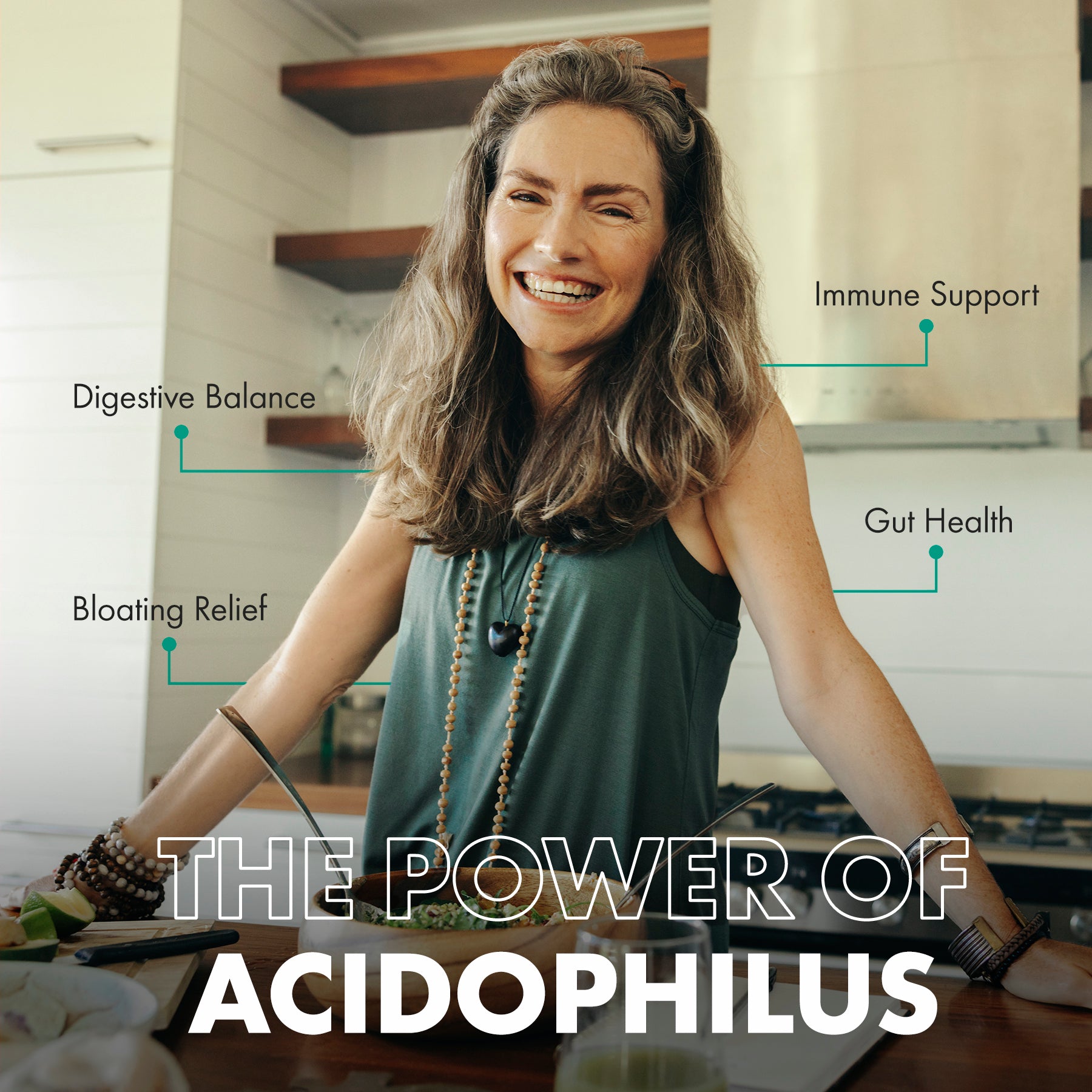 Acidophlus works by restoring the balance of healthy bacteria in your gut, promoting digestion, and protecting against harmful microorganisms.