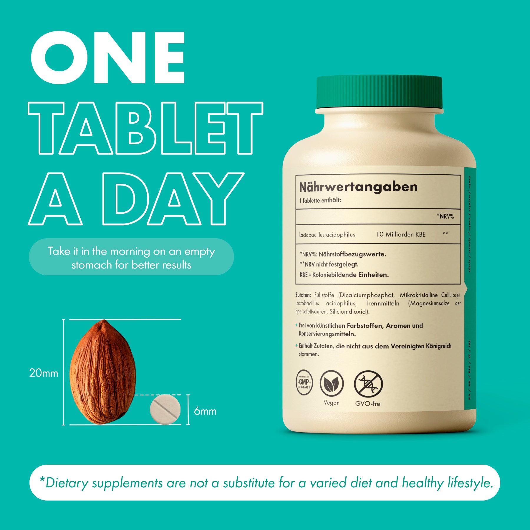 Take 1 tablet daily for a 10 billion CFU of lactobacillus