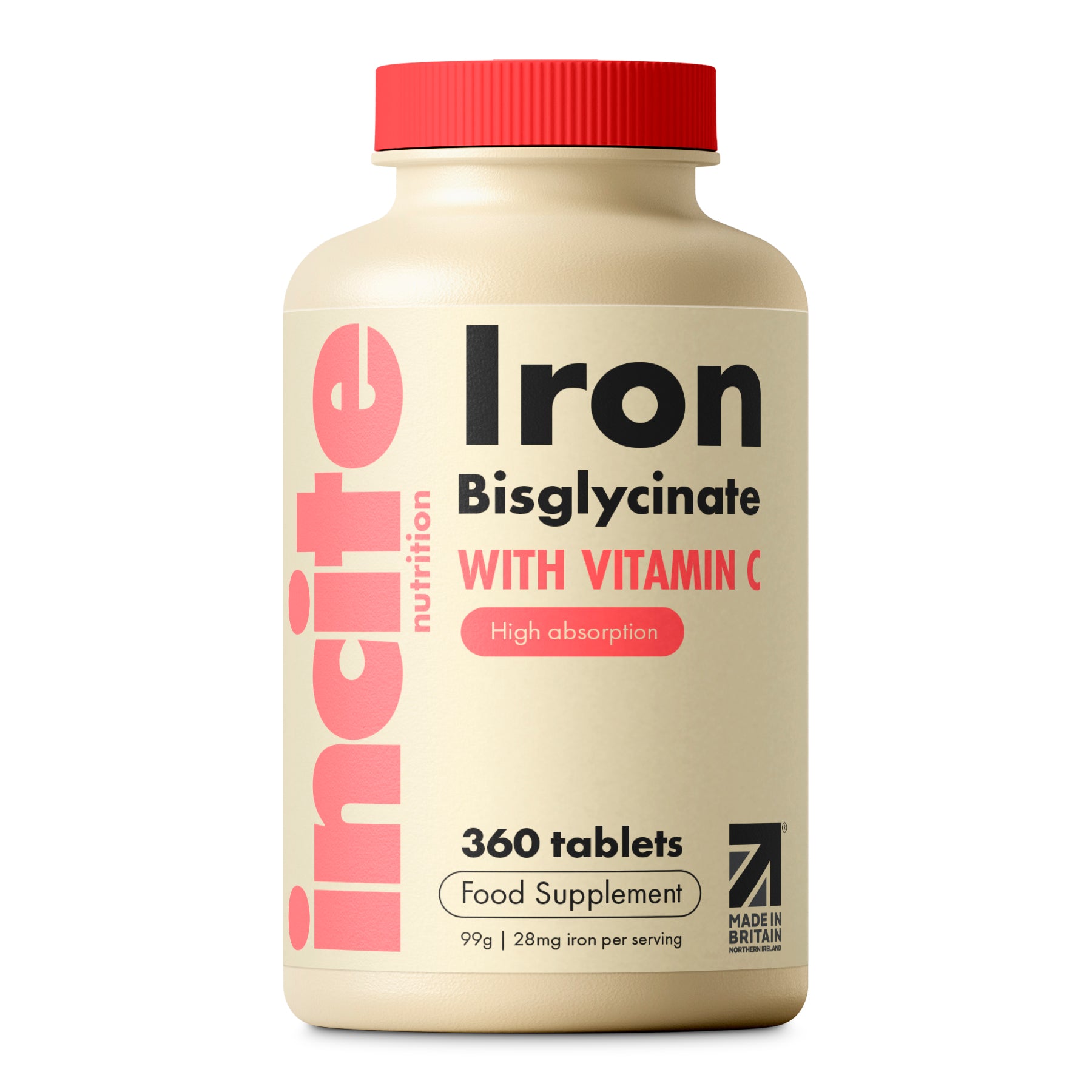 Incite Nutrition Iron boosts energy, metabolism, and immune function. 360 tablets, with vitamin C for absorption, gentle on sensitive stomachs.