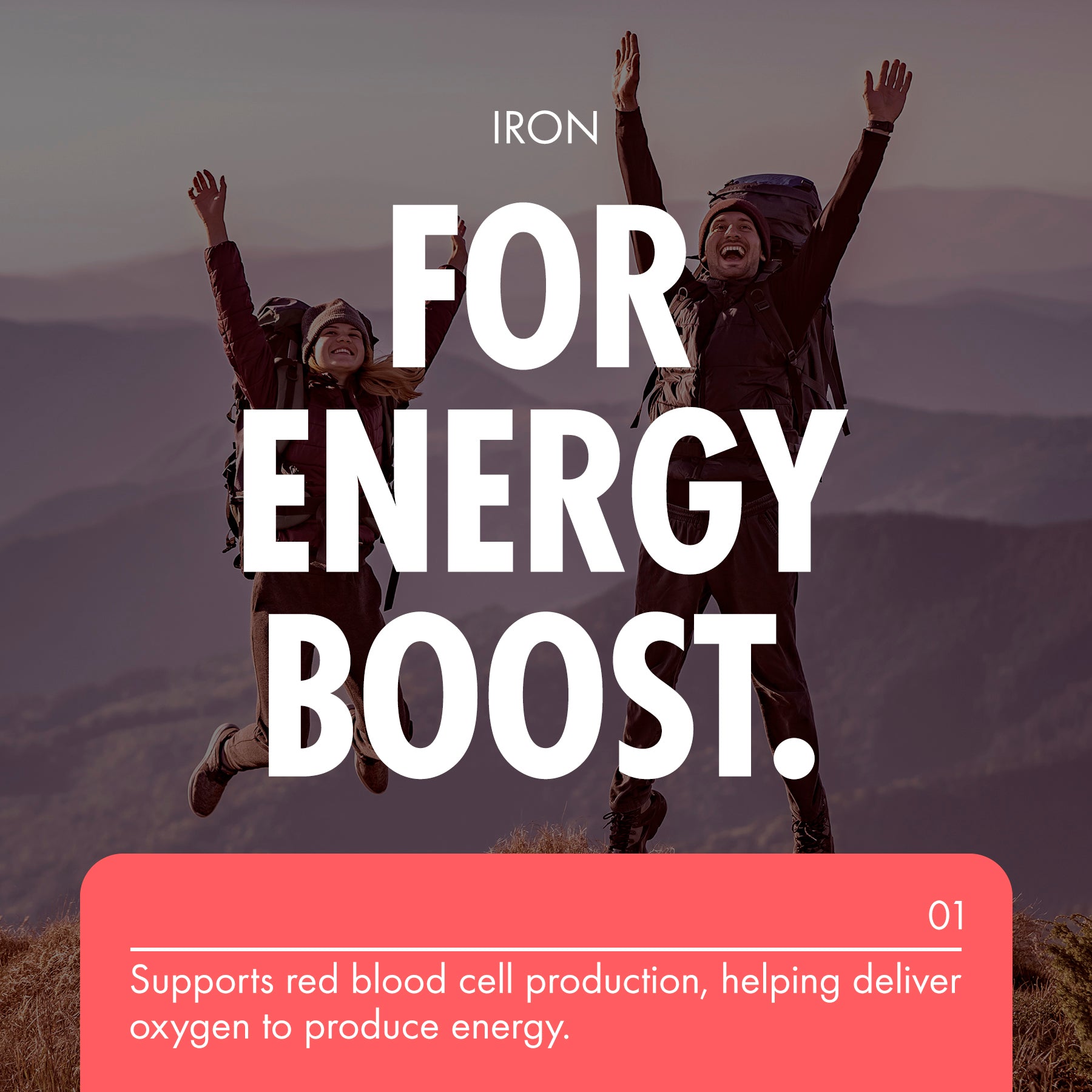 - Health Benefits: Iron is essential to help reduce fatigue and boost your energy-yielding metabolism. It can also contribute to improvement in cognitive function, formation of red blood cells and hemoglobin, transportation of oxygen, and function of the immune system.