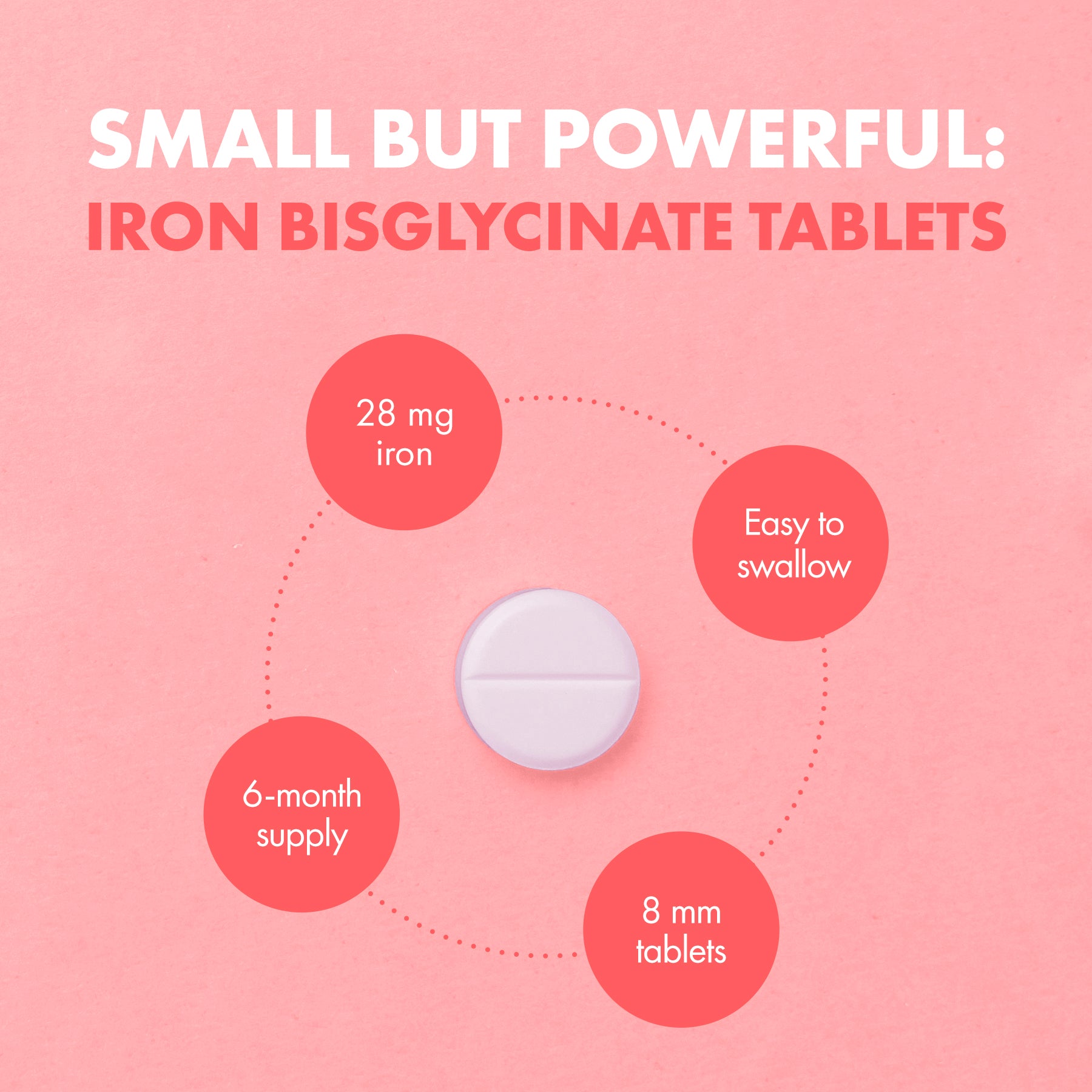 - Gentle on the body: Iron bisglycinate (gentle iron) is tolerated well by sensitive stomachs. Our iron tablets’ high strength doesn’t cause constipation and is especially recommended for people with dietary restrictions, women who are pregnant, breastfeeding, or menstruating, and seniors.