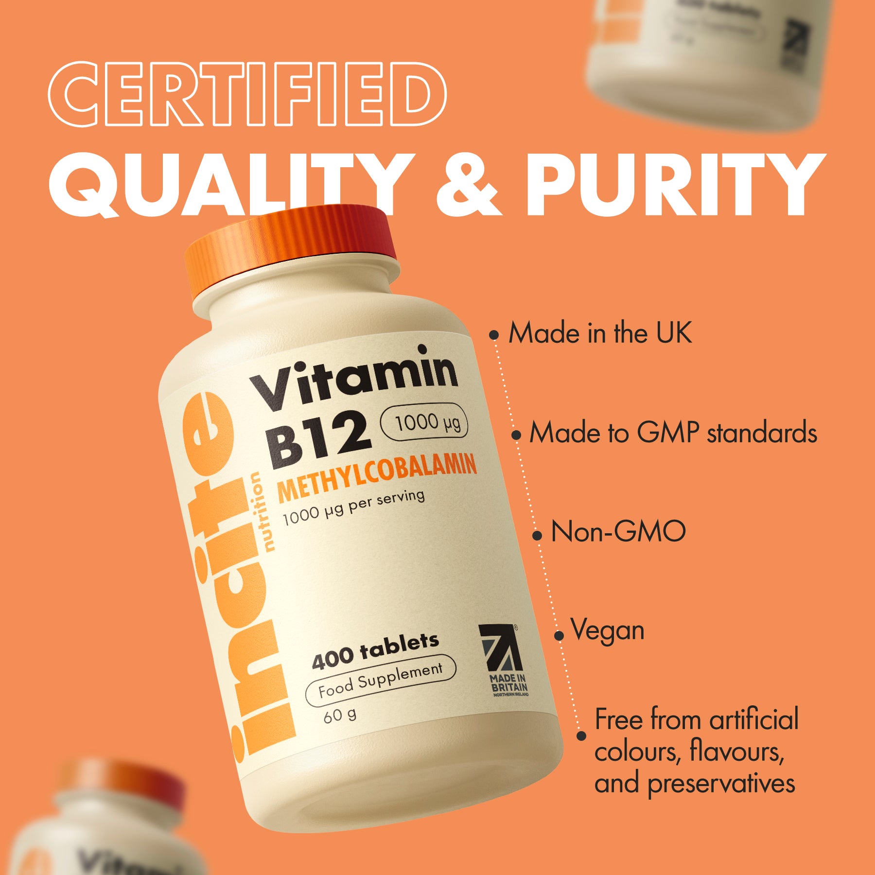 - UK Made to GMP Standards: Our B12 vitamin is made and manufactured in the UK with Premium Ingredients to the highest of standards. Incite Nutrition vitamin b12 methylcobalamin 1000mcg